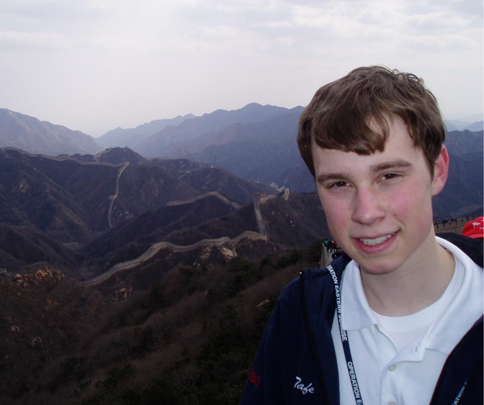Derek Tafel visits the Great Wall of China In March 2008, Derek Tafel performed with his High School Concert Choir in several locations in the Republic of China. The choir performed formal concerts under the direction of Maestro Dilworth at the Shanghai Oriental Arts Center and the Beijing Forbidden City Concert Hall. The choir also performed additional concerts at the Tian Anmen Square, Great Wall, and Beijing High School.